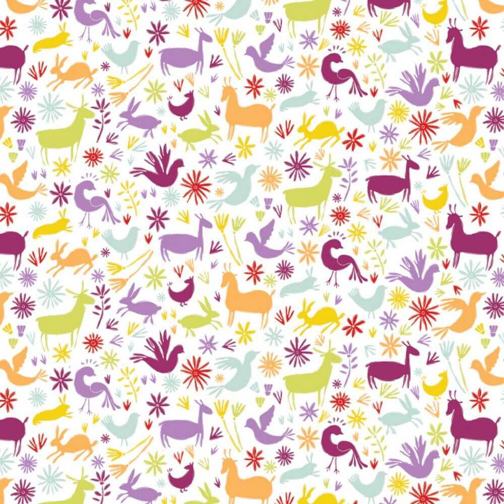 Eternally Yours 44/45″ 100% Cotton, Spirit Animals – White